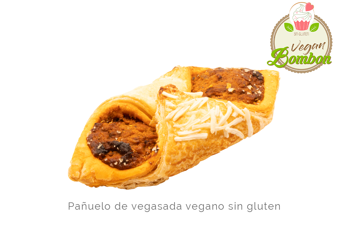 Relleno: Crema sabor sobrasada (pasta de tomate, ALMENDRA molida, ajo, aceite oliva, aceite girasol, pimienta, pimentón, orégano); cebolla caramelizada (cebolla, azúcar moreno de caña, aceite de oliva virgen extra, sal, vinagre balsámico de Módena, almidón de maíz, acidulante (E330); preparado cremoso vegano sabor queso (agua, aceite de coco, almidón, sal marina, regulador de acidez (E575), aromas, extracto de aceite de aceituna, vitamina B12); maicena, nuez moscada.